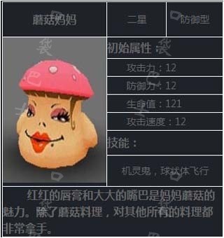 在我们的hello hero中第一个要推荐的是我们的蘑菇妈妈,虽然只有两星,但是防御126、体力730,数据看起来还是非常不错的,并且蘑菇妈妈的攻击也不低哦,攻击增加30%,且CD时间较短,是个能抗能打的英雄,对我们的新手玩家还是很实用的,果然妈妈都是是伟大的啊!